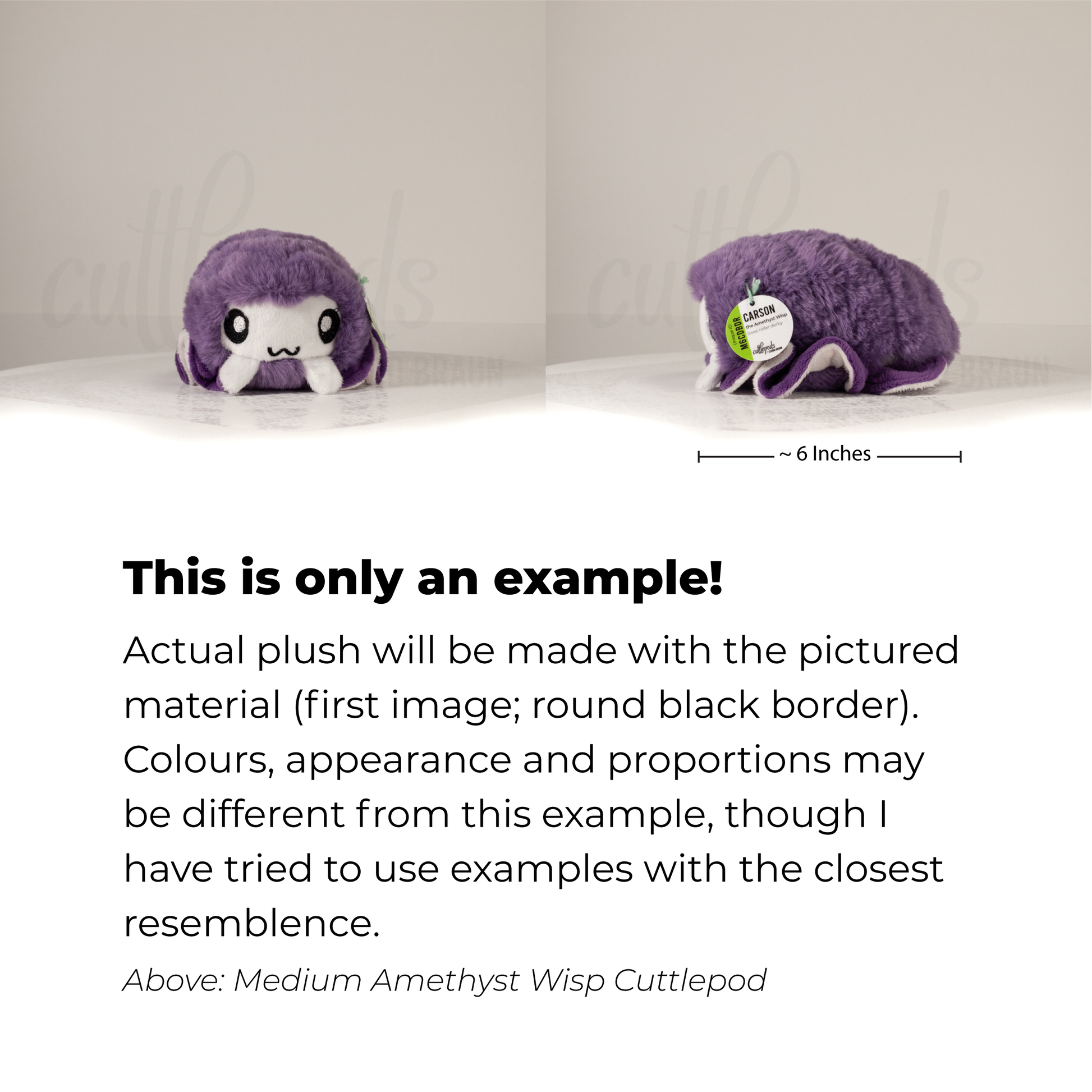 A floofy, handmade, one-of-a-kind Cuttlepod plush. These adorable critters are a cross between a cuttlefish and an isopod. Each one has its own unique colour scheme! No two are the same, so each plush is just as unique as the person who takes it home.